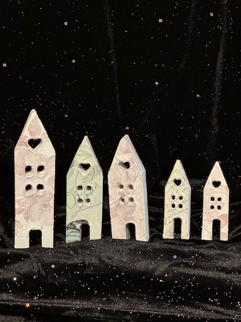 Dekorationshus gjora av expanderbetong. Passar till rund ljusstake som finns att köpa till. Storlek stor (15 cm hög), mellan (11 cm hög) och liten (8,5 cm hög). Pris stor 75 kr, mellan 60 kr, liten 40 kr. Kan beställas via hanti.se, klicka på bilden så kommer du dit.